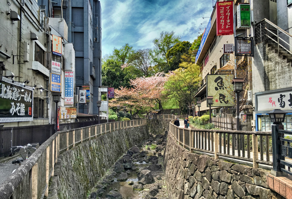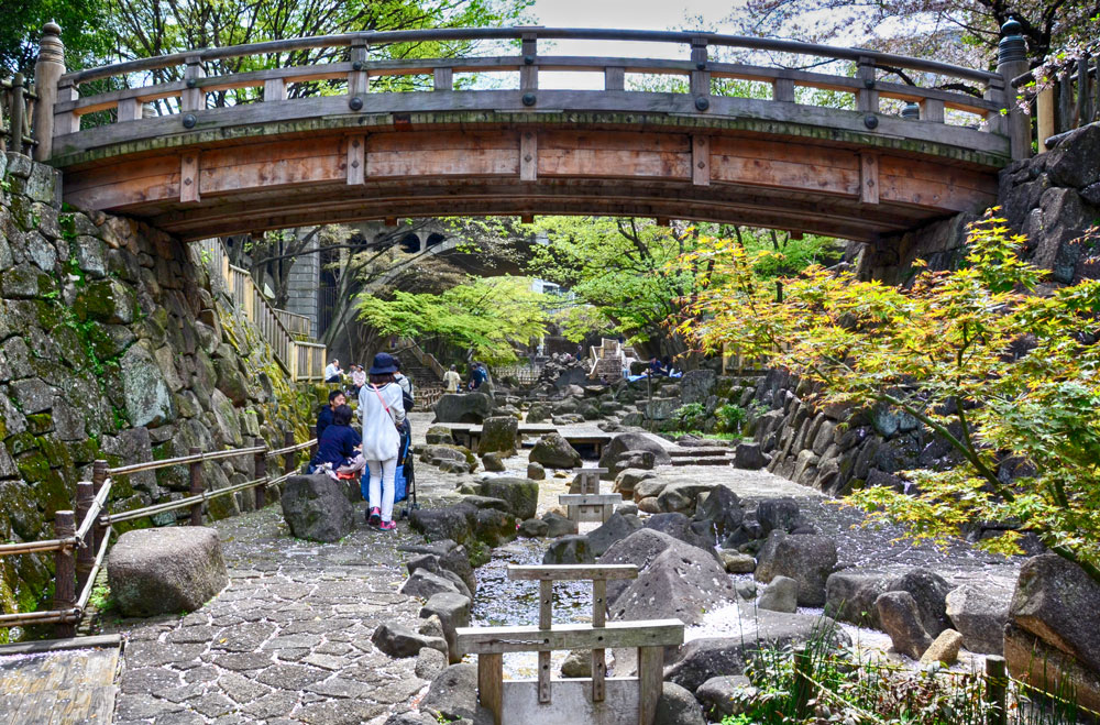 Otonashi Shinsui Park is located in the north of Tokyo, right next to Oji Station. It is a wonderful place to relax and feel the traditional Edo atmosphere. The famous Ukiyo-e master Utagawa Hiroshige captured the beauty of the place in the series “One Hundred Famous Views of Edo”. It is also a nice and not much crowded place for cherry blossom viewing. In old times the area was favorite of daimiyo and samurai for hanami parties.